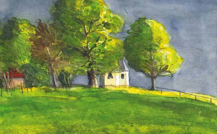 Kapelle bei Degerndorf, 2010, Aquarell, 32 x 20 cm